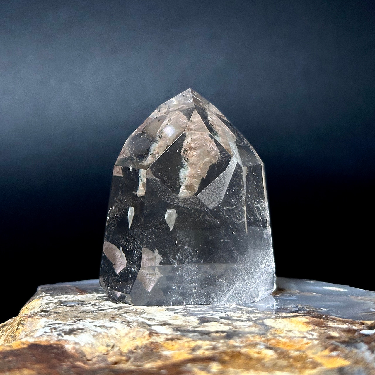 そもそも、ファントム水晶というのは、水晶の成長過程で一時停止や環境の変化が起きた際に形成された、内部に山形の層(幻影)を持つ水晶です。一度成長が止まり、再度動き出したことから、その一連の記憶をそのまま内包している石とも考えられ、