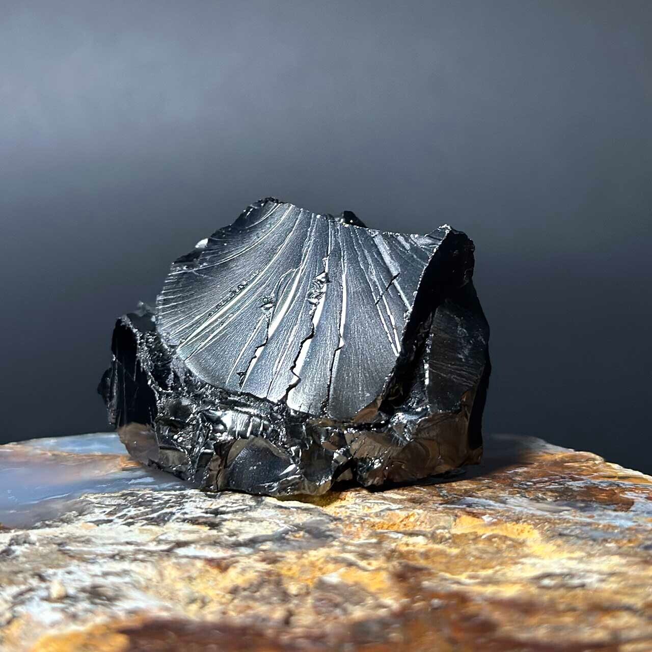 今回ご紹介するのは、炭素純度が90%以上の希少な「エリートシュンガイト」の原石です。