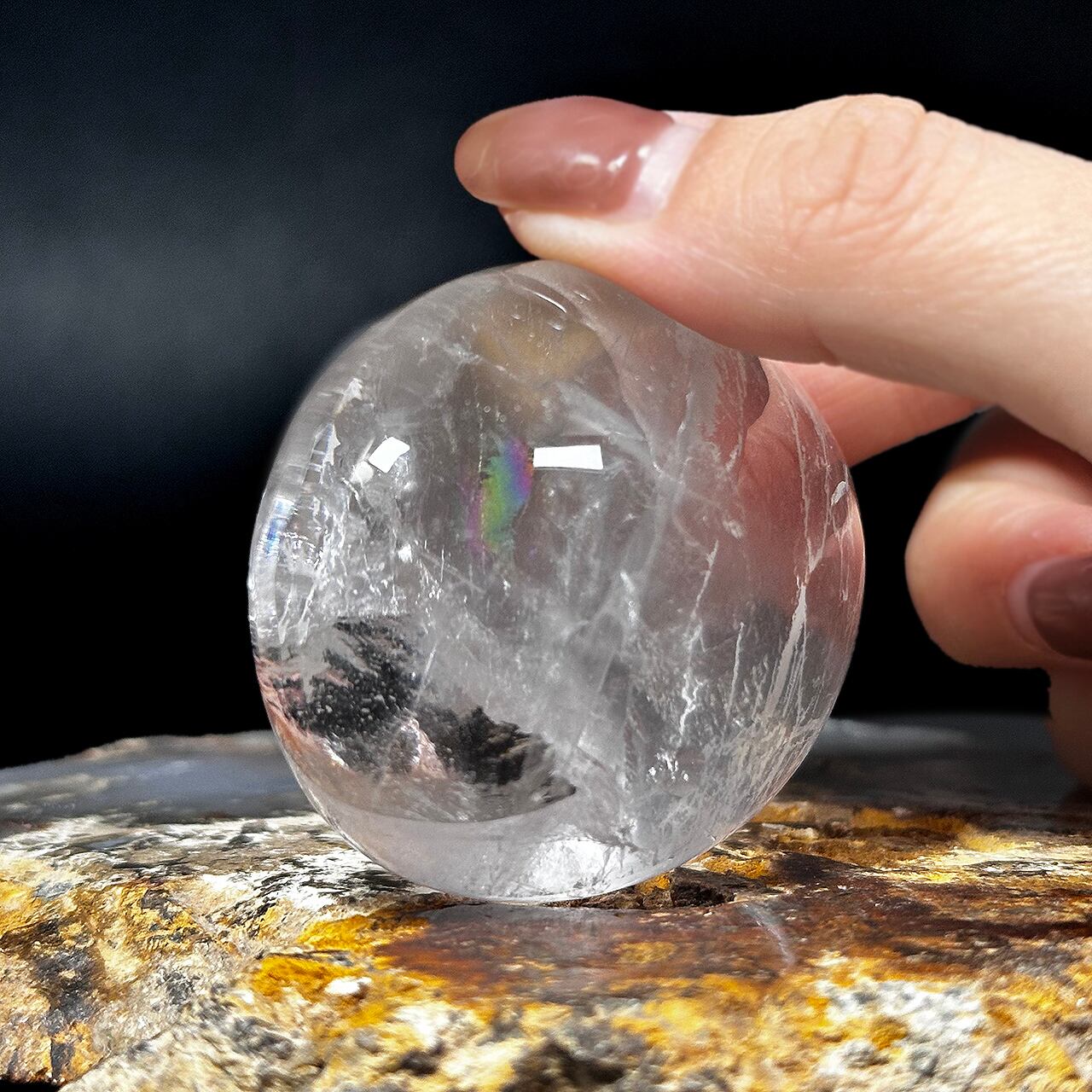 クラック部分には、角度によってキラッと虹が光ります。