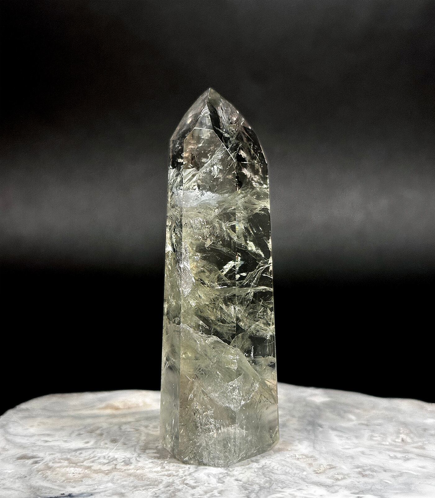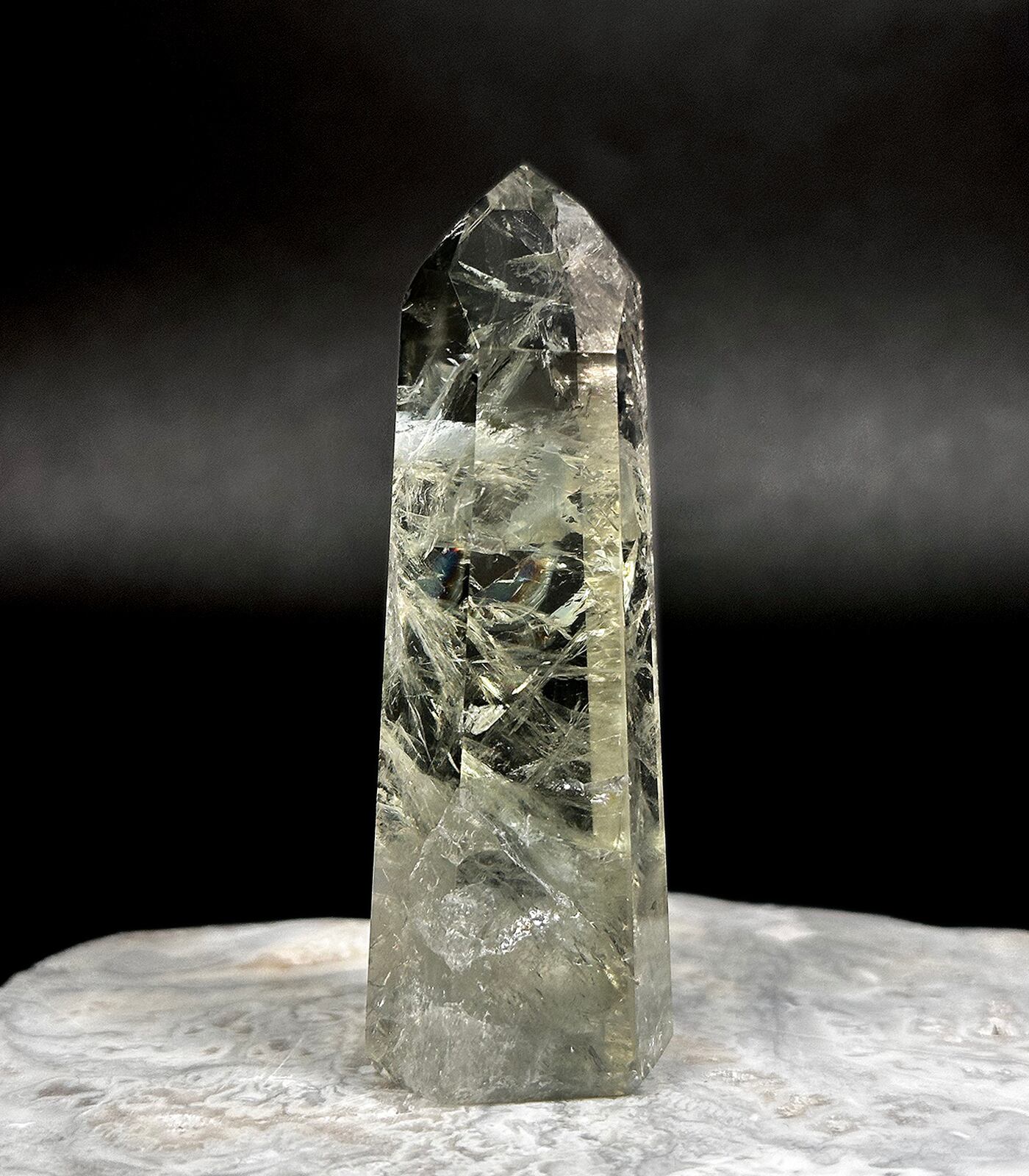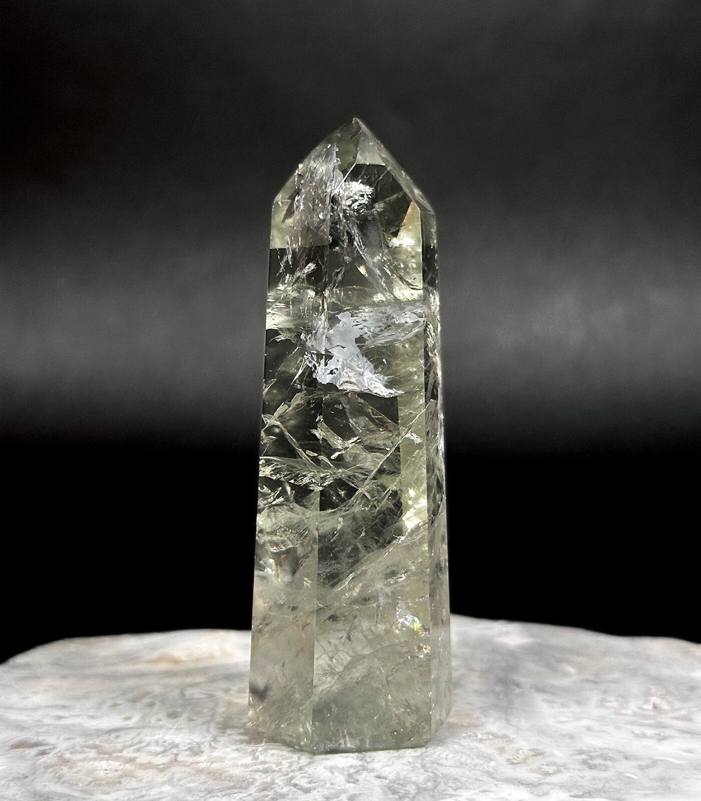 *加工時にできたものか、あるいは内部クラックに由来するものかはわかりませんが、ポイント先端部分に、わずかですが欠けている部分がございます。(写真14〜16枚目をご参照ください)